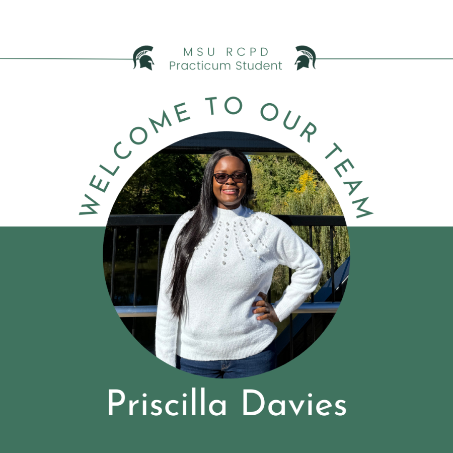 As the weather starts to change and the fall colors begin to pop, the hustle and bustle remains steady around campus with students and staff settling into their respective routines. This fall the Resource Center for Persons with Disabilities (RCPD) office has been busy helping many students and staff get set up with accommodations among many other events and program planning. Assisting in these efforts are three practicum students and two interns that have joined RCPD this fall. RCPD is honored to welcome Priscilla Davies, Mudita Jagota, Terry O’Connor, Erin Caldwell, and Austin Housh to the team!